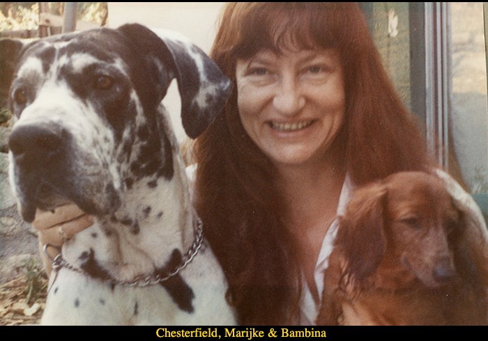 Through our friend Richard Jones, a gemologist I had known since my London days and who was a dog walker at the Laguna animal shelter, Guard and I had adopted an abandoned 10 year old Great Dane called Chesterfield. Ches loved our miniature Dachshund but all things must pass and little Bambina soon passed away at 15 years old. We laid her to rest under a walnut tree by the vegetable garden. After several years Zorthian had other plans for the place we rented and we had to find new digs.