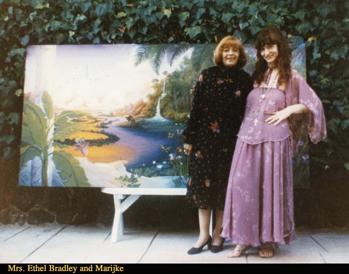 I busied myself preparing for the big day in the summer of 1982. Mrs. Bradley arrived in a limousine accompanied by two secret service agents. Naomi’s cute little girl Vanessa presented her with a pretty small flower basket while the hostess seated her at the place of honor. Many interested parties and friends showed up and it was a huge success. Even my favorite foster brother (my first art mentor) Evert van de Pol came all the way from Amsterdam, which brought me to tears…I was thrilled he spent a week with us and we visited most of the Los Angeles museums to satisfy his love of art.