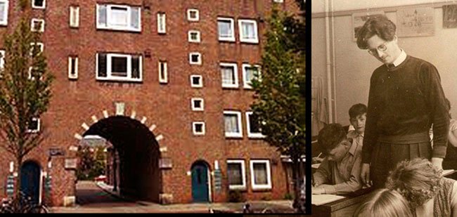 The working class neighborhood and the house where we lived, in the so called Transvaal area, was in itself remarkable, built by the prominent and influential architect Hendrik Berlage, (architect of the outstanding β€œBeurs”, the commodities exchange in Amsterdam, and considered the father of modern Dutch architecture). It consisted of three story row houses with a succession of intriguing small courtyards and archways around cobblestone plazas surrounded by flower gardens and patios, which fired my imagination and was the playground for the kids living in the neighborhood.