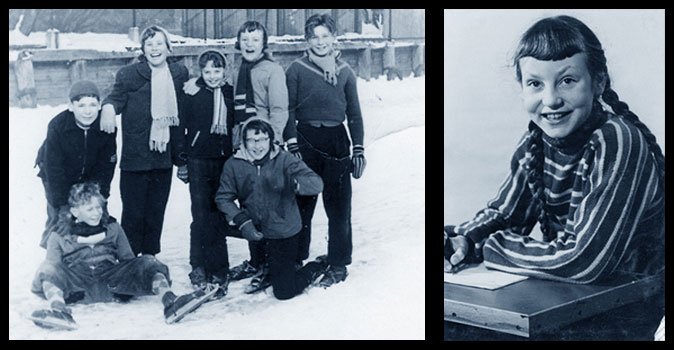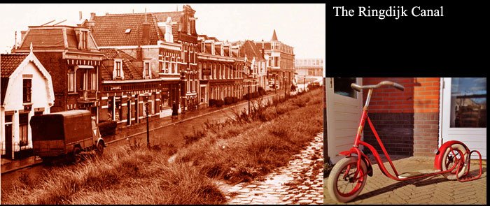 In winter a woman would deliver the glass milk bottles with her shaggy dog drawn cart through the snow, wearing wooden clogs stuffed with straw against the freezing cold. Us children would skate to school on the canal with wooden skates that tied onto our shoes but in summer we could swim in the Amstel River further down the road. I got a bright red scooter with pneumatic tires for my 8th birthday, which I raced over and down the Ringdijk at breakneck speed.